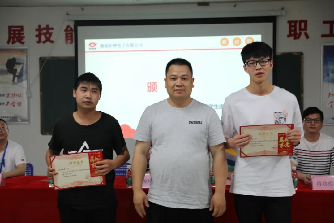 郴州技師學(xué)院實習(xí)帶隊老師陳穩(wěn)生、廖宇、周宇,企業(yè)代表人事部唐俊峰、肖功桂及100余名實習(xí)生參與了本次表彰。